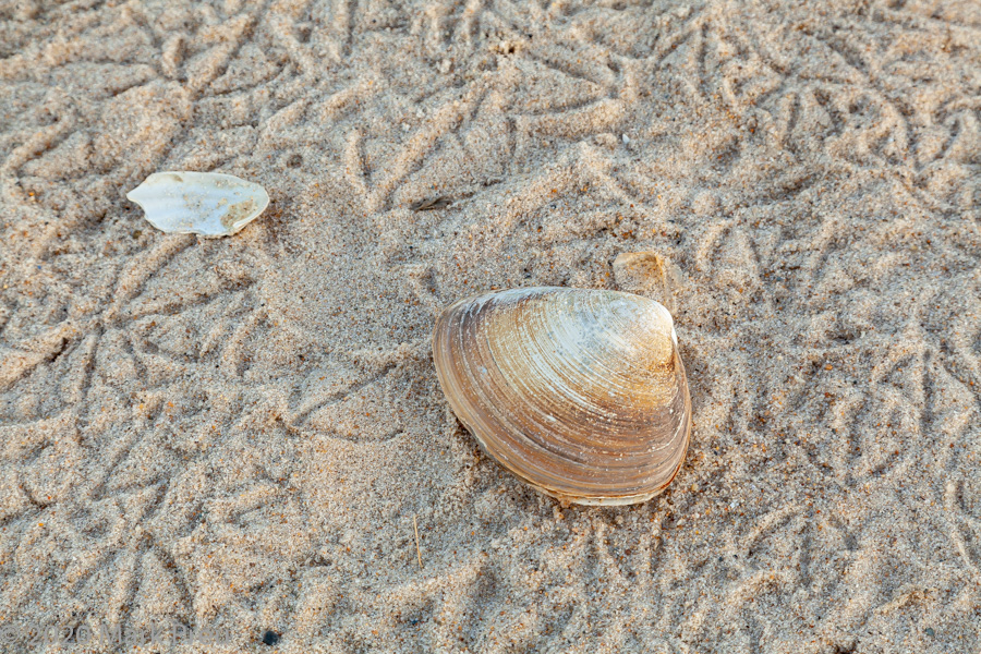 On Saturday, we had a big storm. With high winds and above average tides due to an approaching full moon the east facing beaches were really stirred up . On Monday evening I went to Nauset Beach to photograph full moon rise at sunset, one of my favorite themes. Upon arrival, I noticed large areas of sand were covered in gull tracks. Then I realized why there was so much bird traffic. The storm had washed up a huge number of sea clams, and the gulls were having a feast!